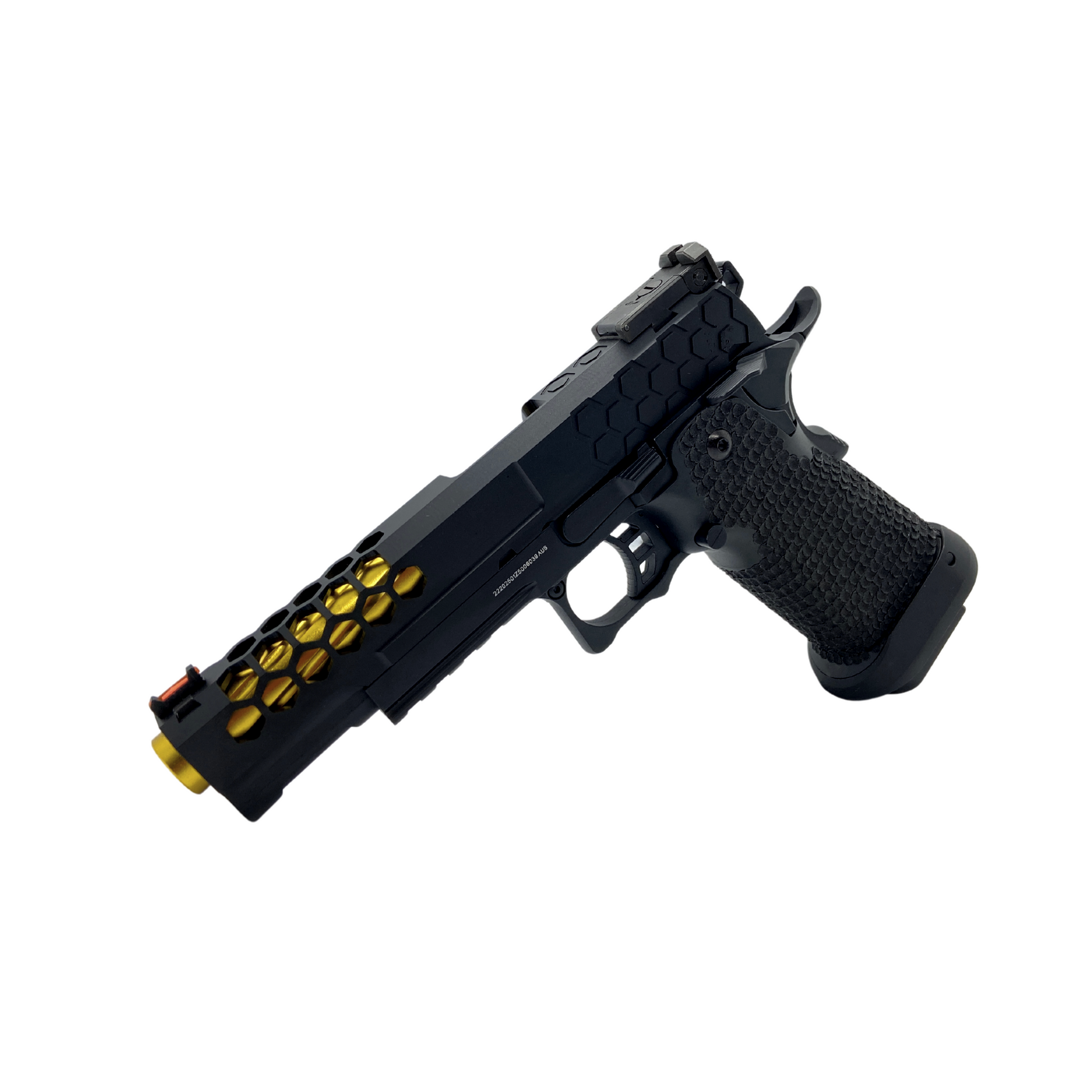 The Golden Eagle G3399 Hi-Capa Hex Gas Pistol is the highest quality Hi-Capa to hit the market so far. This pistol gives you all of the quality you'd imagine in a Gas pistol, with CNC slide, metal body and extremely high quality internals. We can not recommend this pistol more.